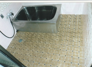 洗い場で水を使うと外に水が漏れてくるとのことでした |